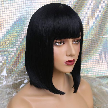 14 Medium Short Bob Wig With Bangs Synthetic Hair For White Black Women Cosplay Color Black Walmart Canada