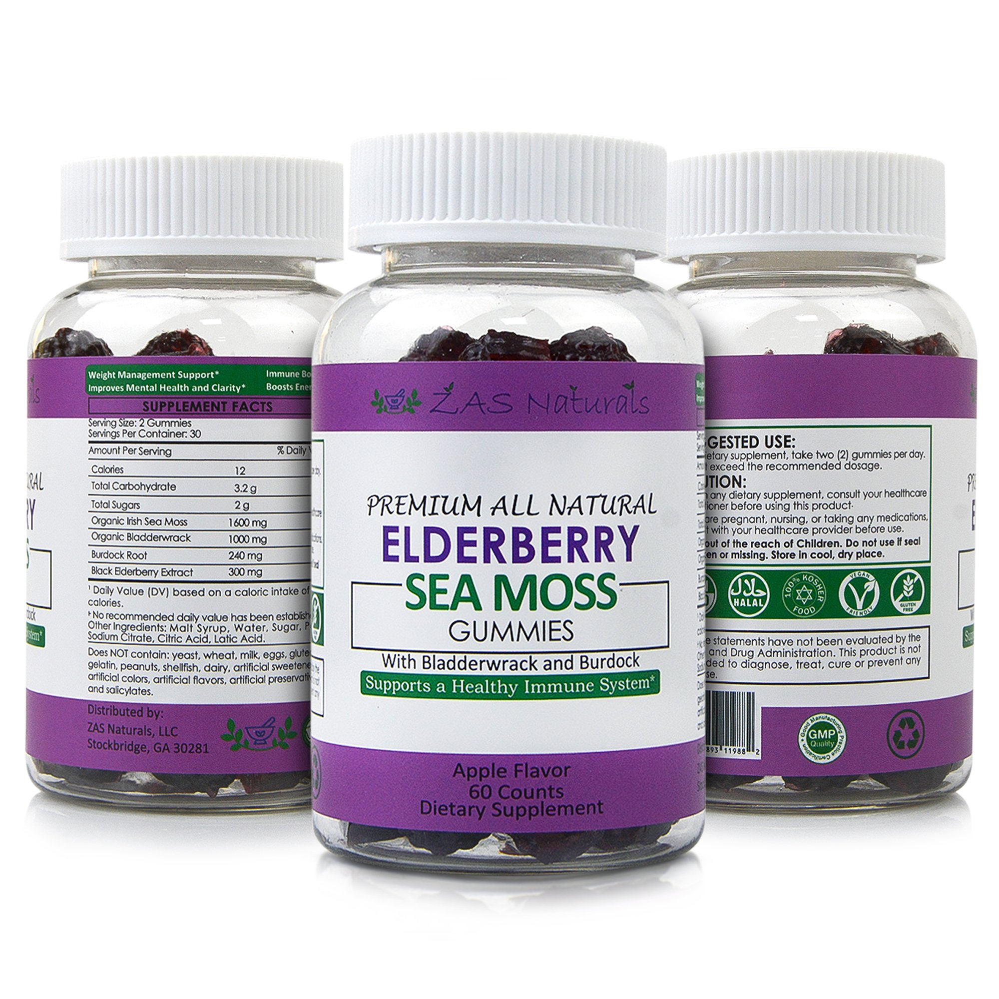 All Natural Sambucus Black Elderberry Organic Irish Sea Moss Gel Gummies W Organic Bladderwrack Burdock For Adults Children W Vitamin C Zinc 60 Count Walmart Com